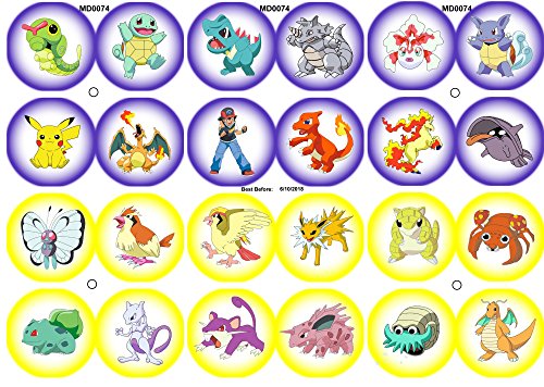 Specification: 24 Fabulous Edible Wafer Cake Toppers: Pokemon